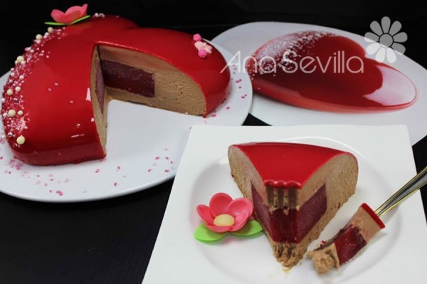 la prepare para hoy san Valentín muy buena, pero porque se se va como saliendo liquido y la cobertura espejo tiene que llevar tanta azucar leche condensada, chocolate blanco.....
