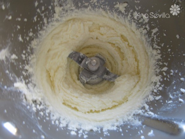 1- Cremar la mantequilla y el azúcar 3 min., vel.3 y 1/2.