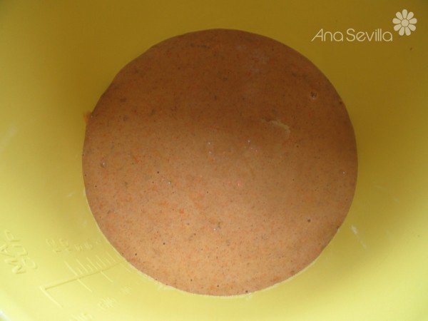 5- En un molde engrasado de unos 20 cm. diámetro y hornear de 25-30 minutos a 180º.