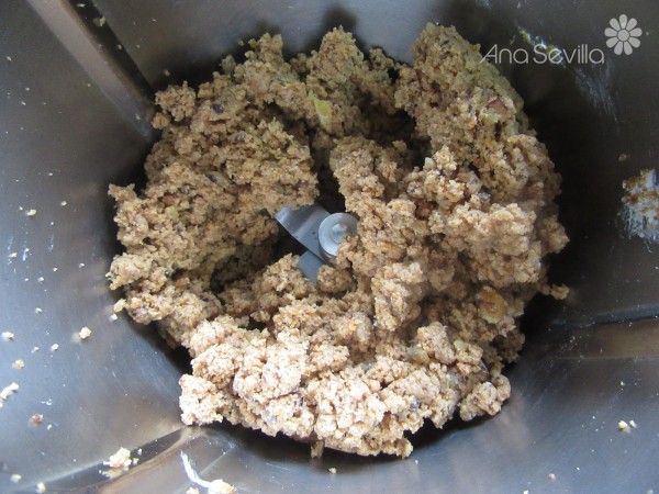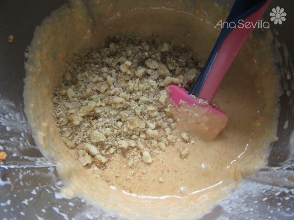 4- Mezcla de harina y zanahoria rallada, 10 seg. vel.4. Agregar las nueces y mezclar con la espátula.