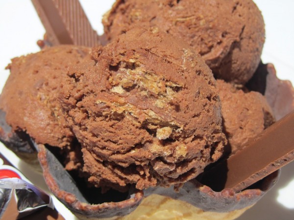 Llevar a la heladera y mantecar, cuando veamos que está consistente, le unimos los huesitos troceados, en un tupper.