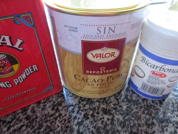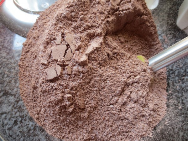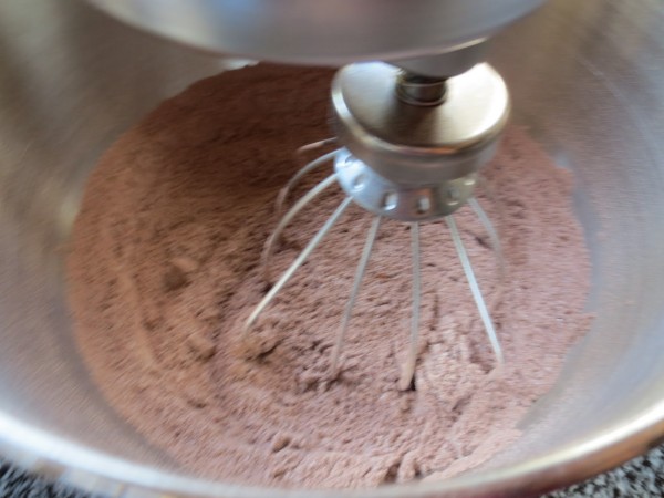 2- Con las varillas, mezclar unos segundos a velocidad los ingredientes secos: Harina, cacao, sal, bicarbonato, levadura y azúcar. Reservar.