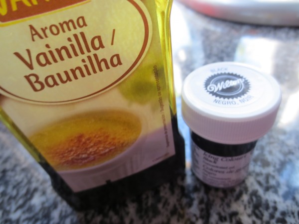 La vainilla y el colorante negro, (No es imprescindible el colorante eh? Pero potencia el color negro para simular la cerveza)
