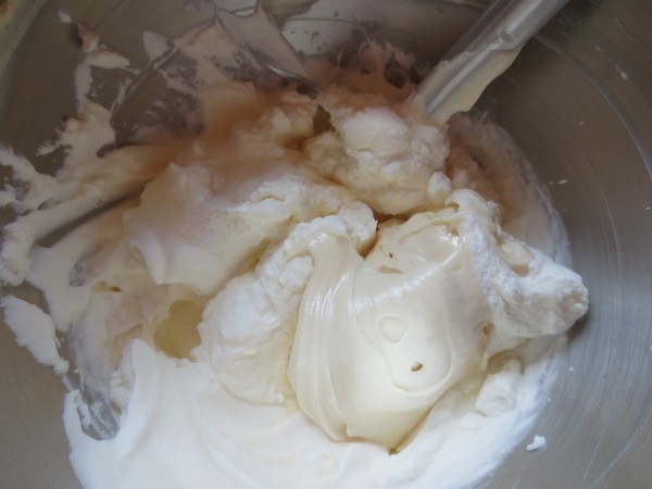 Después unir con movimientos envolventes a la crema de queso. Llevar a la nevera para que tome más cuerpo.