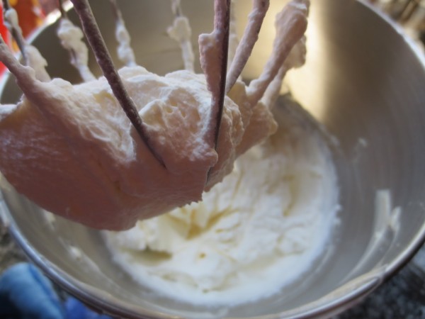 2- En otro bol, montar la nata ,con cuidado que no se convierta en mantequilla.