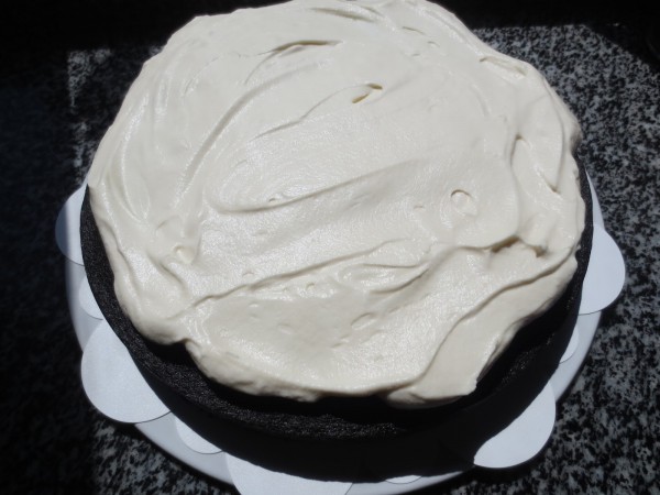 Es mejor hacerlo todo el día antes, los bizcochos estarán asentados y el frosting bien frío.