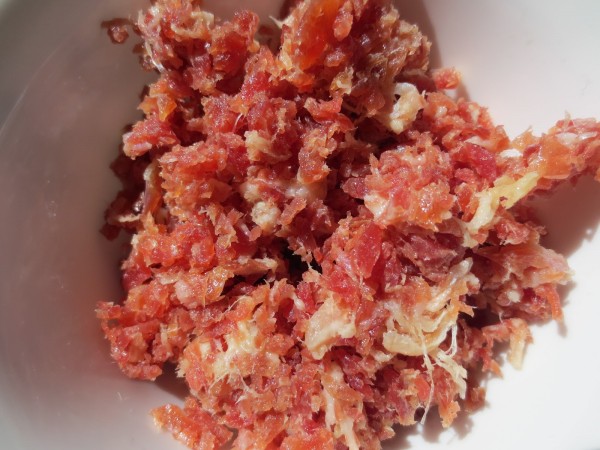 1- Picar el jamón con una picadora, reservar.