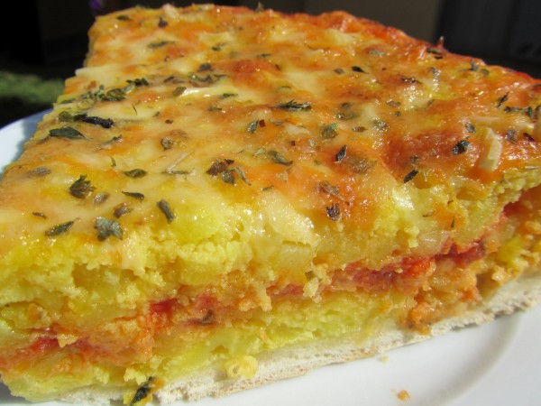 Sí, jejeje, rellena con tomate, masa de pizza y tortilla, original , verdad? Cocina tradicional.*PINCHA AQUÍ!! Para ver la receta con Thermomix.