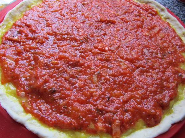 1- Hacer la masa de pizza como en ésta receta, pincha AQUÍ, dejar levar mientras hacemos el relleno.