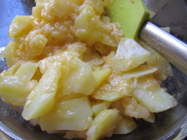 las patatas guisadas para mezclar con los huevos