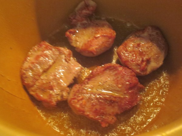 1- Calentar aceite en la cubeta en menú freír. Salpimentar las carrilleras y dorar por ambos lados. Reservar.