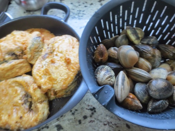 1- Cubrir las almejas con agua y sal, y dejar como una hora, para que suelten arenilla.