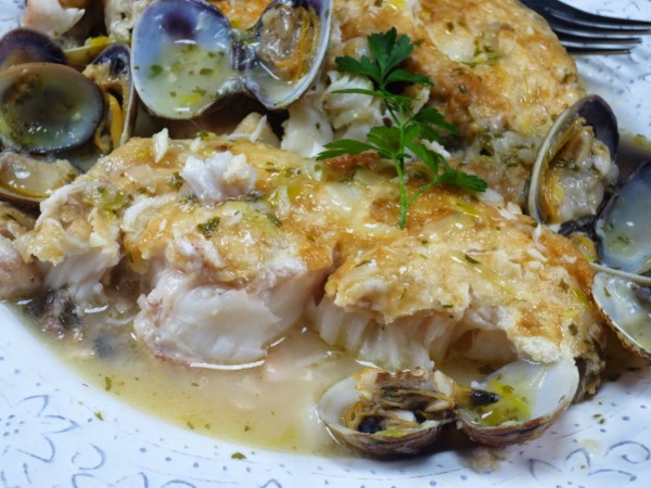 Merluza a la romana con almejas