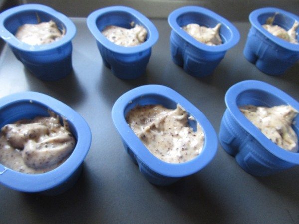 6- Echar montoncitos, llenar 1/3 cápsulas de papel, metidas en moldes rígidos, los de albal desechables también sirven, de silicona o en un molde de unos 20 a 23 cm diámetro.