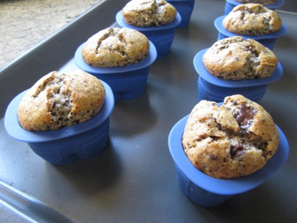 Magdalenas de plátano y chocolate,cocina tradicional casera.