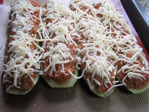 7- Rellenar los calabacines, espolvorear queso rallado y hornear 20-30 minutos. (200º).