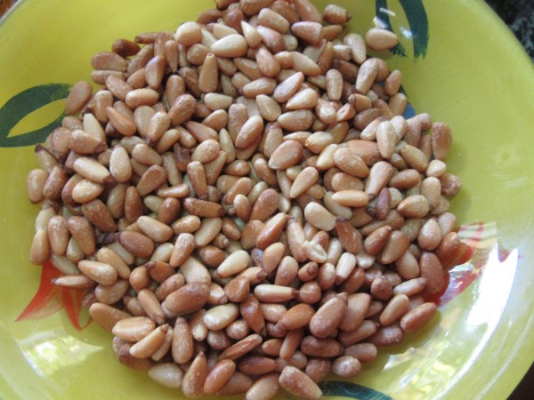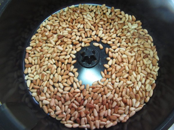 1- Tostar los piñones en una sartén. Dejar enfriar.