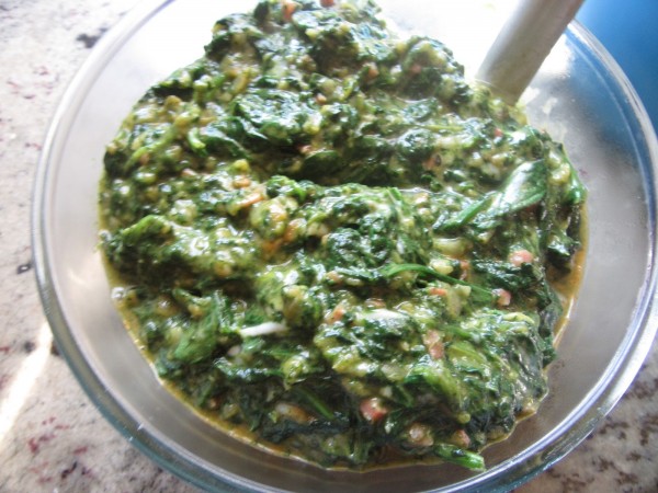1- Escaldar las espinacas, 3 -4 minutos en agua hirviendo con sal. Escurrir bien. Reservar.