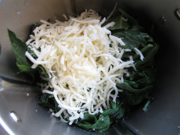 Añadir las espinacas y el queso rallado , yo pongo mozarella y mezclar todo bien
