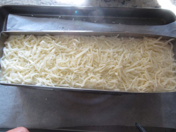 4- En una fuente engrasada, disponer una capita de bechamel, ir colocando placas y relleno alternativamente en capas. Empezar y terminar con pasta. Cubrir con el resto de bechamel. Espolvorear queso rallado.