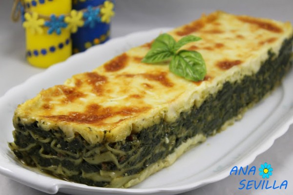 4- Añadir las espinacas, un poco de sal y el queso rallado, mezclar bien el conjunto. Cocer o remojar las placas de lasaña en capas como indique el fabricante.