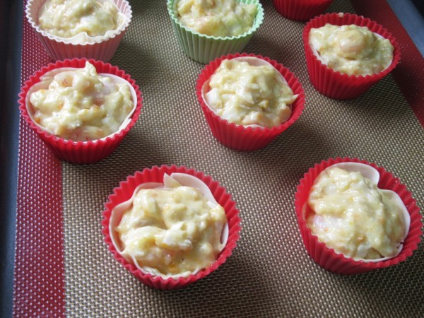 5- Precalentar el horno a 200º. Acomodar las obleas en las tartaletas, metidas en moldes, rellenar, espolvorear queso rallado y hornear hasta que quiera tomar un poco de color. Como 10-15 minutos.