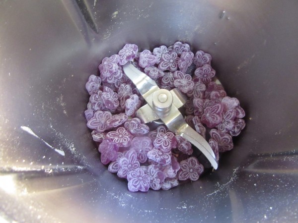1- Triturar los caramelos violetas con un molinillo o procesador. Reservar.