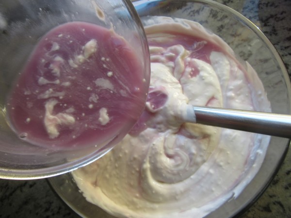 6- Agregar las láminas de gelatina bien escurridas, y mezclar bien. Dejar entibiar unos minutos y unir con movimientos envolventes a la nata.
