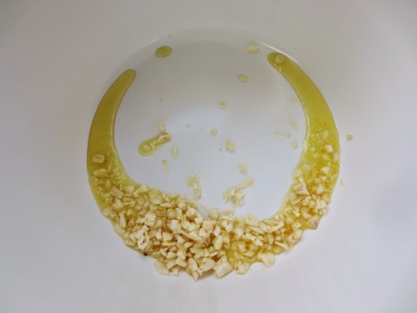 2- Picar restos de ajos, (4), bien menudos y sofreír en un poco de aceite, sin que lleguen a tomar color.