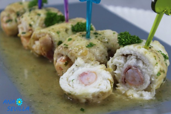 5- Desenvolver las popietas, el juguillo que sale de los rollitos añadir a la salsa y triturar. Dar un hervor a pescado con la salsa.