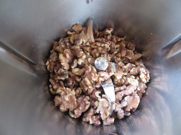 1- Tostar en una sartén las nueces, así se potencia el sabor. Dejar enfriar y separar un puñadito para adornar.