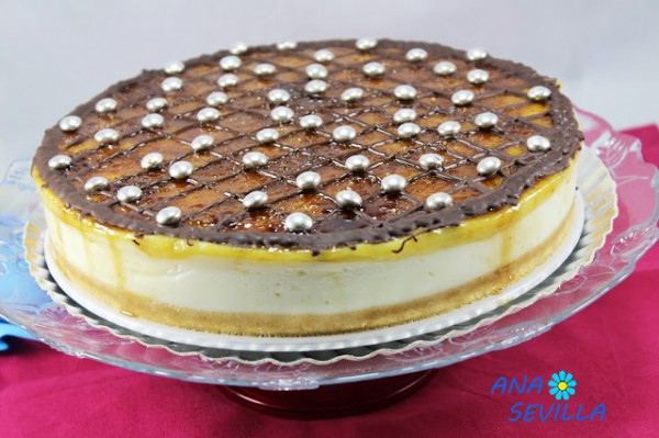 3- Añadir la gelatina bien escurrida y mezclar bien con varillas. Llenar una manga pastelera y dejar a temperatura ambiente, mientras solidifica el relleno, como una hora.Cubrir la tarta con la yema. alisar y llevar de nuevo a la nevera unas horas.