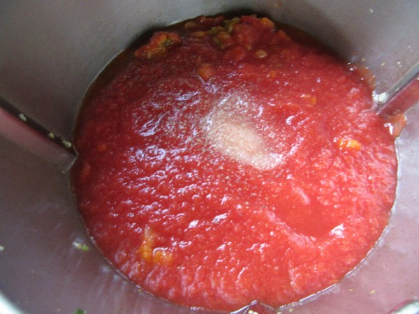 3- Agregar el tomate, 1 cta. sal, azúcar y pimienta, y sofreír unos 20 minutos.