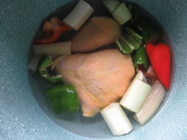 Cocer el pollo con las verduras