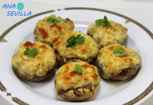 5- Rellenar los sombreritos, espolvorear queso rallado y horno pre-calentado a 210º, unos 25-30 minutos, hasta que tengan color.