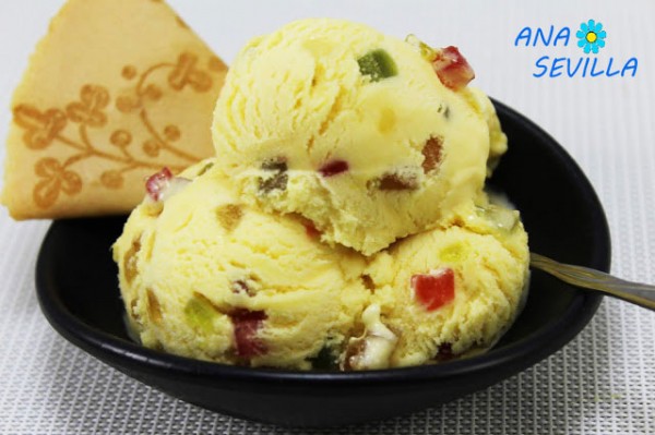 *Si no tenéis heladera, bien fría la natilla, unir con las frutas y llevar al congelador, dando vueltas cada media hora hasta que se congele.