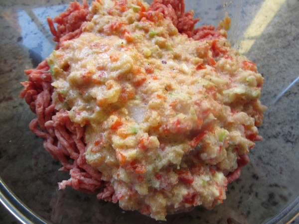 2- Añadir los huevos, leche, pan rallado, tomillo, orégano, 2 ctas. sal, pimienta y cayena, mezclar todo con la carne.