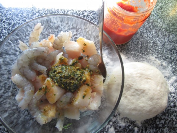 Una vez tenemos la masa de pizza, adobar el pescado
