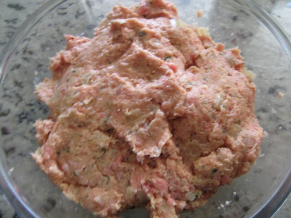 3- Mezclar con la carne el sofrito, ajo en polvo, orégano, perejil, carne picada, sal, tomate frito y queso rallado, que quede bien unido.