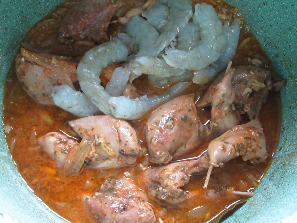 -un vaso fumet langostinos o caldo carne (O agua y 1/2 pastilla)