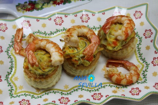 5- Pre-calentar el horno a 200º. Rellenar los volovanes. Hornear unos 15 minutos.