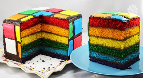 Tarta arco iris de nata y chocolate