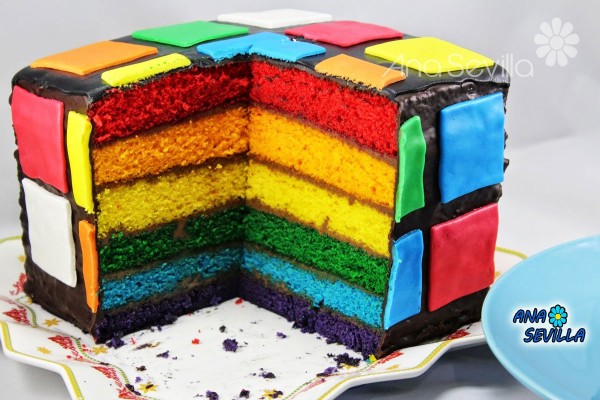 Tarta arco iris de nata y chocolate Tradicional