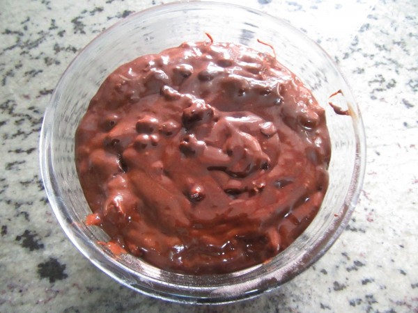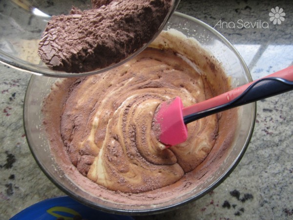 2- Mezclar los ingredientes secos en un bol, harina, cacao puro en polco, levadura y bicarbonato. Y en otro bol, fundir el chocolate negro con la mantequilla.