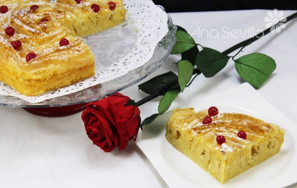 Tarta de griega de masa filo, para San Valentín. Súper crujiente por encima que contrasta con el rico flan del fondo.