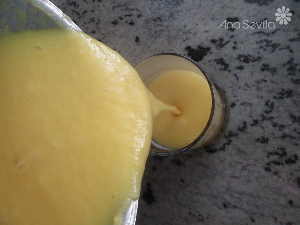 1- Triturar la piña en trozos, azúcar, huevos, maizena y vainilla, que quede un puré muy fino y sin grumos. 10 seg., vel.8.