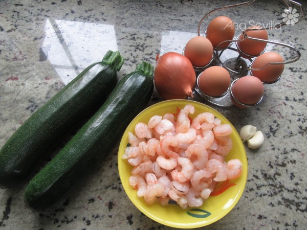 Revuelto de calabacín y gambas