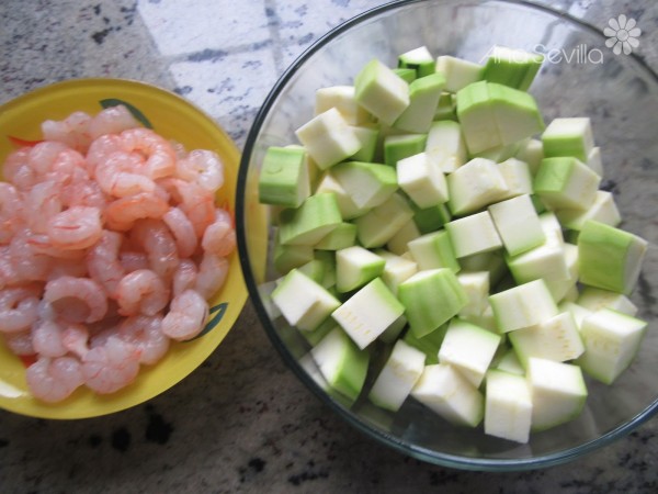 Revuelto de calabacín y gambas Tradicional