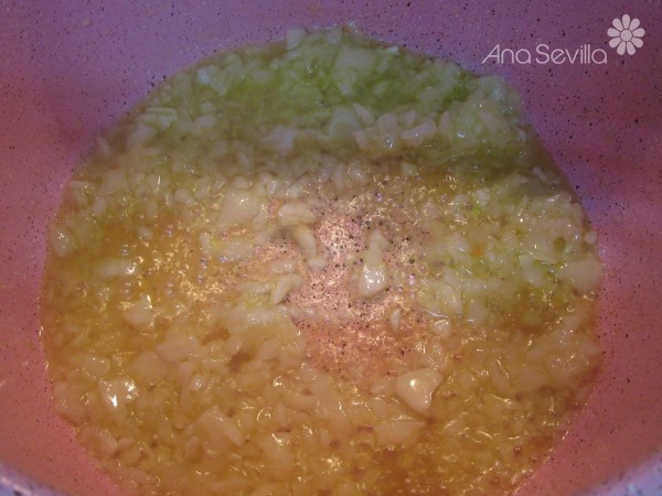1- Picar menudos la cebolla y ajos y sofreír unos 6-8 minutos.