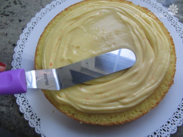 -Montaje: Cortar el bizcocho en 3 discos, almibarar e ir rellenando con la crema, cubrir con el resto y adornar a gustos. Servir bien fría.